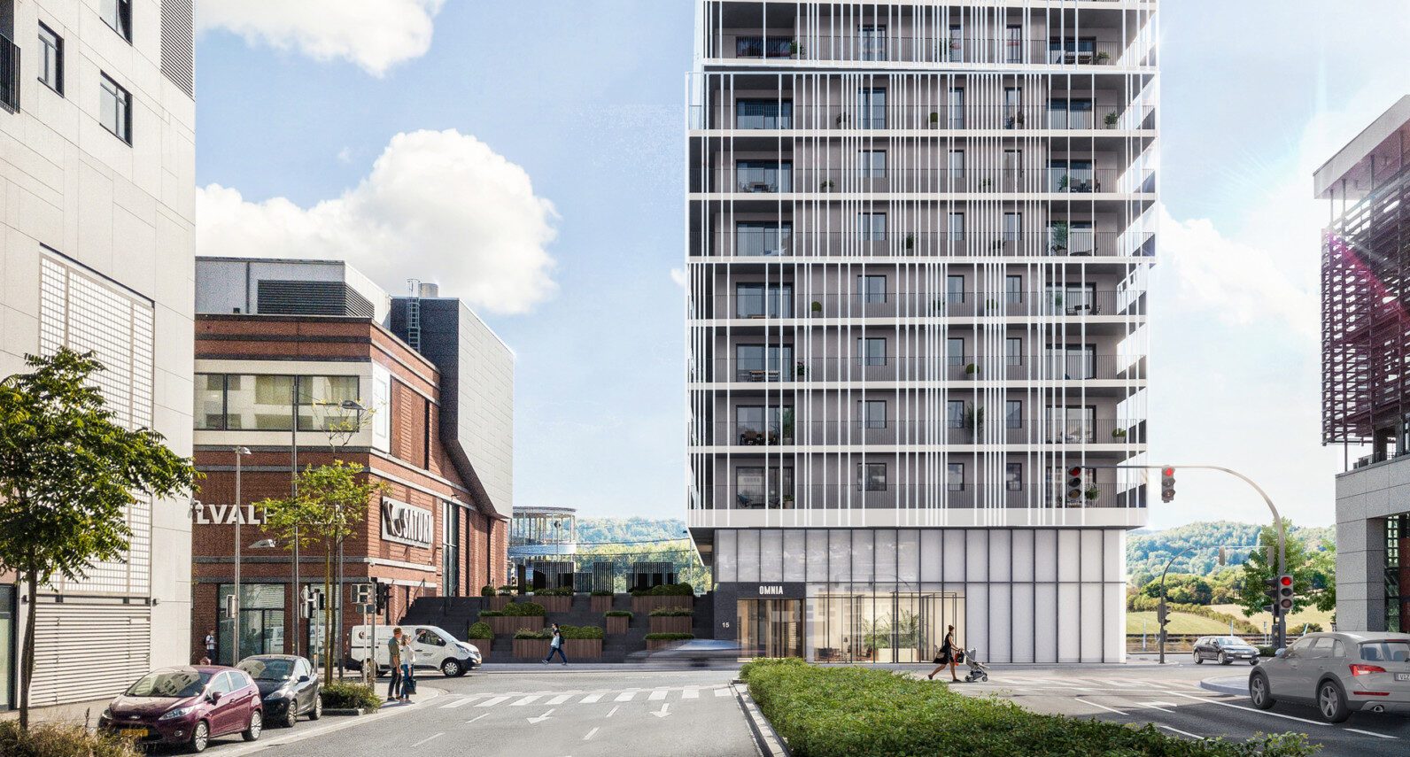 Tour de 15 étages comprenant 106 appartements et 2 espaces mixtes bureaux/commerce. Érigé au dessus du tunnel de Micheville, ce projet tout à fait particulier entraîne des contraintes uniques en terme de conception et de suivi. La présence du tunnel et de diverses voies d'accès sous le bâtiment exclut l'utilisation de fondations conventionnelles. Les charges sont donc réparties sur la paroi de béton qui sépare les voies du tunnel et sur un caisson de contreventement. Les caves des appartements sont reportées au premier étage.